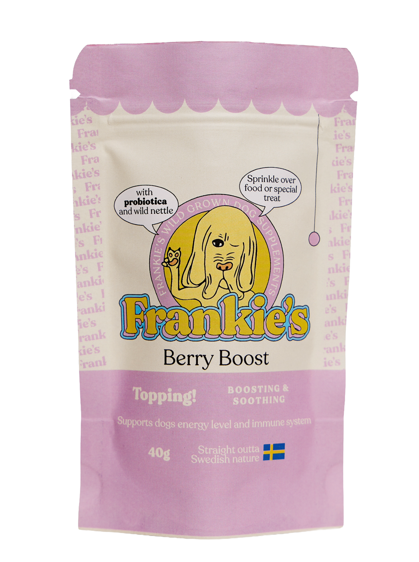 A unique composition of wild berries, herbs, inactivated yeast, prebiotica and lactic acid bacteria to support dogs immune and digestive system